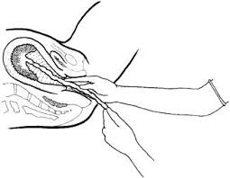 2.     Secara obstetric maukkan satu tangan (punggung tangan ke bawah) kedalam vagina dengan menelusuri tali pusat bagian bawah.