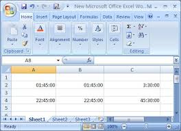 e. Area lembar kerja (worksheet) adalah bidang dimana kita menuliskan input dan sekaligus melihat outputnya. Area ini terdiri atas beberapa kolom yang ditandai dengan huruf A, B, C dan seterusnya, lalu beberapa baris yang ditandai dengan angka 1, 2, 3 dan seterusnya. Perpotongan antara kolom dan baris disebut juga sel. Dalm contoh diatas, sel yang aktif adalah sel B3 artinya terletak diperpotongan antara kolom B dan baris ke-3.Pada bagian pojok kiri bawah terdapat nama dari setiap worksheet (perhatikan gambar dibawah, lembar kerja yang aktif dalam Gambar 3 namanya Sheet1). Nama ini bisa diganti. Caranya arahkan pointer mouse ke nama worksheet, lalu click tombol kanan mouse Anda lalu pilih Rename. Setelah itu ketikkan nama worksheet yang Anda inginkan.